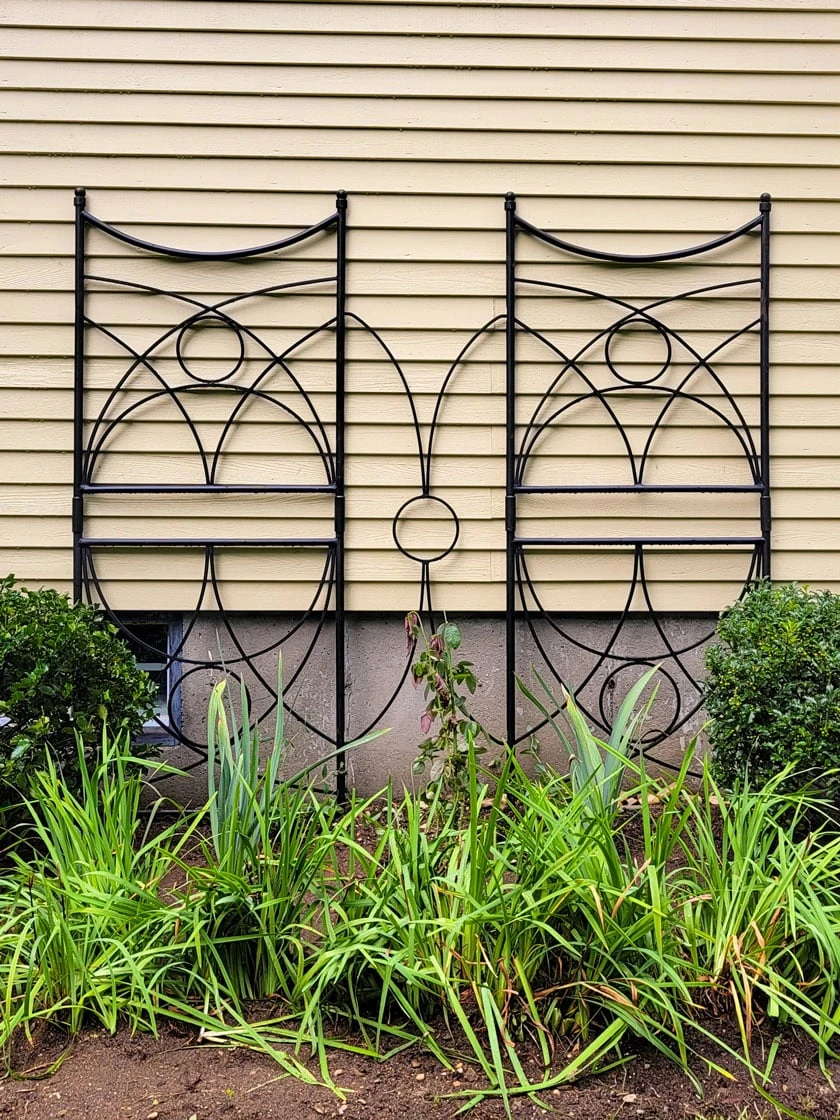 Easy installation and free standing, this trellis can be staked directly into the ground and stabilized with optional wall brackets, train vining plants to work their way up.