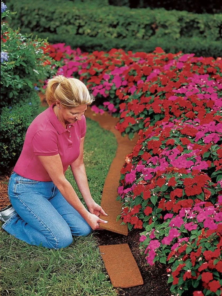 Some gardeners dislike plastic mulches, but want something more permanent and more effective than bark mulch. This edging is made of coco fibers bonded with natural latex rubber. Anchored at the edges with Earth Staples, sold separately, they can be mowed over — no trimmer needed.