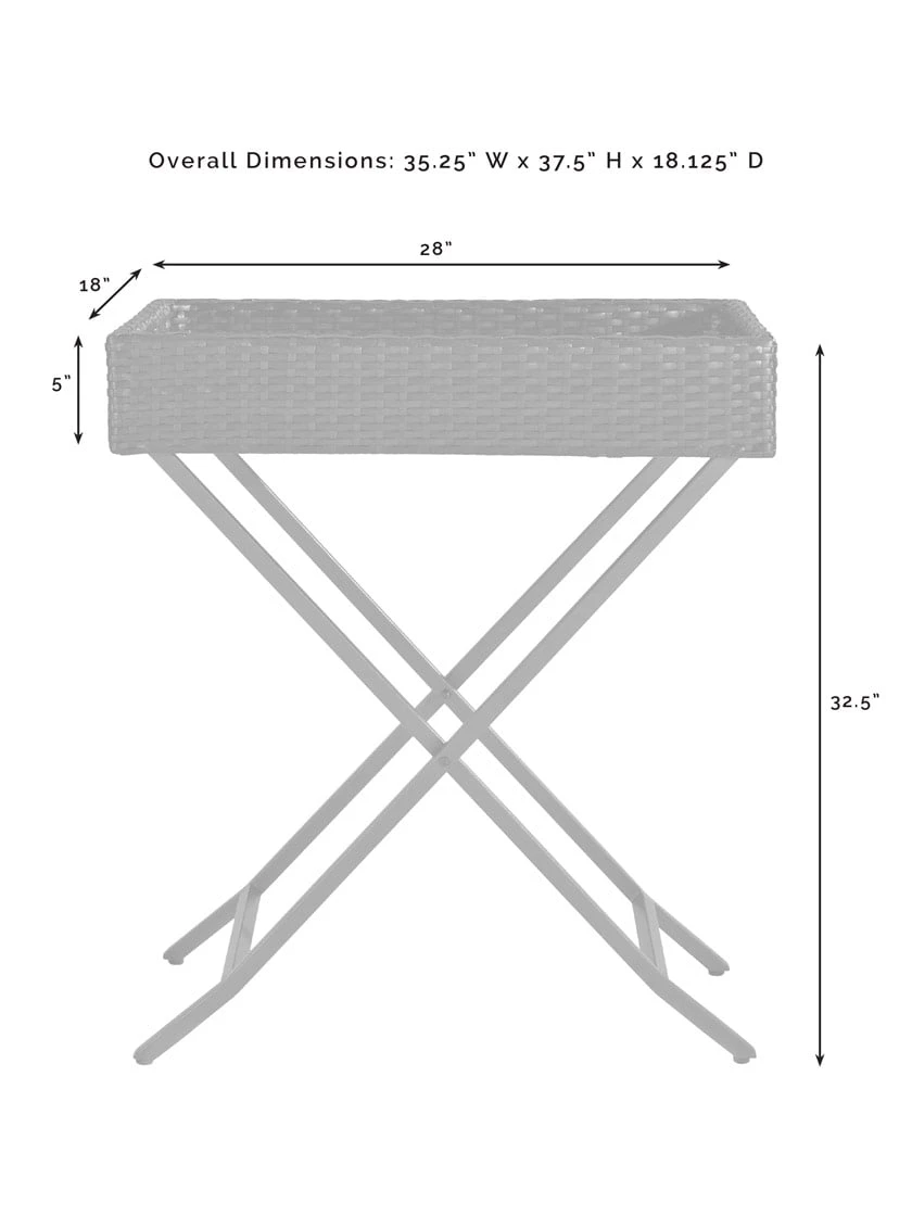 The Palm Harbor Butler Tray adds versatility and convenience to your outdoor space with its flexible design. Constructed of durable steel and covered in all-weather resin wicker, this useful server can double as a side table or small bar. With a foldable base and removable serving tray, this side table can be easily moved where needed and stored when not in use. Whether you’re resting your drink or offering snacks to party guests, this tray is at your service.