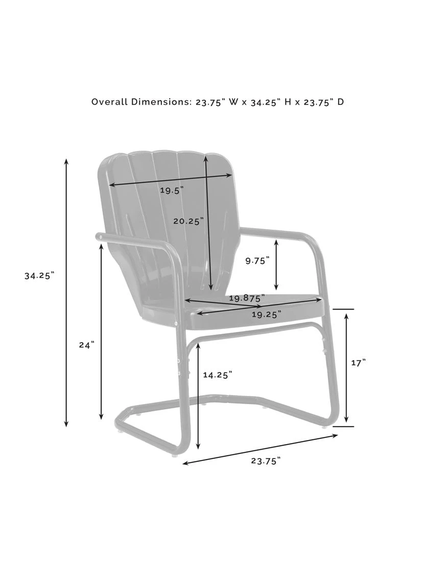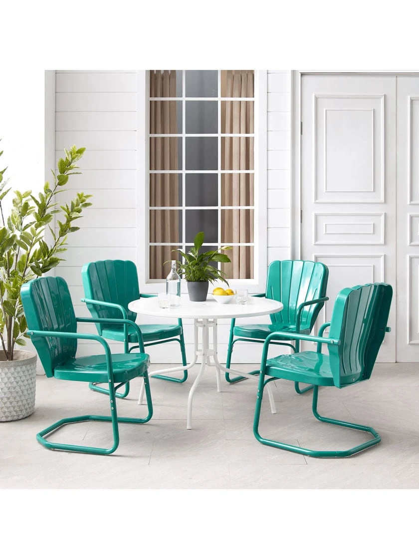 Inspired by the designs of yesteryear, the Ridgeland 5pc Dining Set brings class and charm to your outdoor space. Four vintage styled chairs in vibrant colors surround a simple metal dining table for a fun and functional outdoor dining experience. Each chair features a clamshell back with decorative grooves, plus a cantilever base that provides a relaxed seat for dining al fresco.