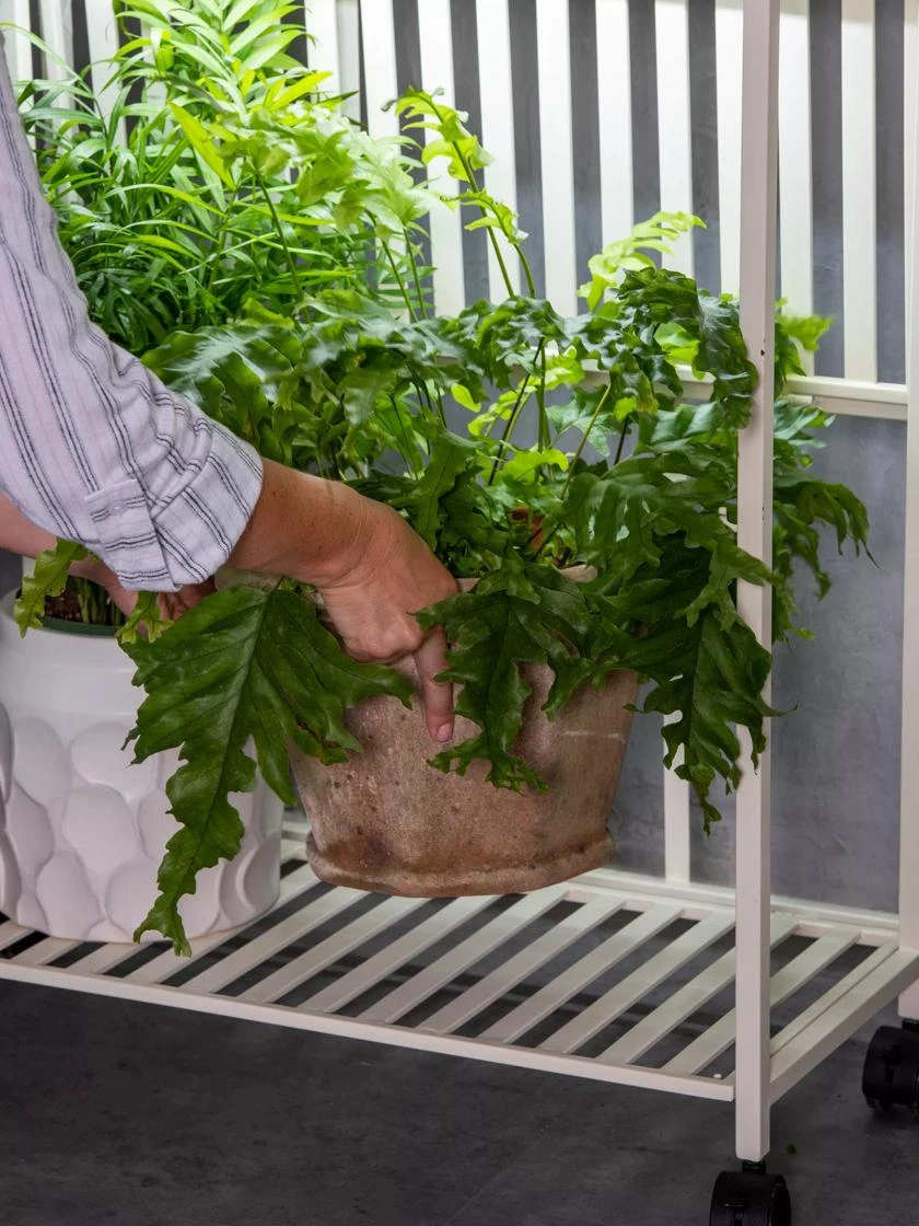 We’ve paired fold-up metal shelves with magnetic light fixtures to help you create optimal space and light for everything you want to grow indoors! Use just one high-output LED fixture per tier for lower-light plants, or use two if you have light-hungry ones! Entire frame folds flat for storage too. Matching trays sold separately. Includes two LED fixtures — additional light fixtures available separately.