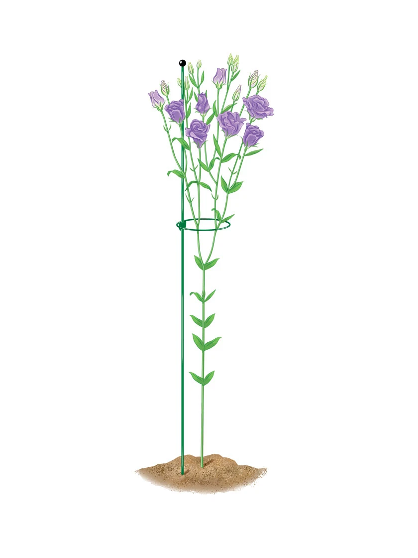 Designed to last a lifetime, these superior plant rings are simple, attractive, and ultra versatile. Unique system allows rings to slide easily up the stake to keep pace with your growing plant — and yet won’t slip down under bloom weight. Galvanized steel has a protective vinyl coat that’s gentle on stems. And a glossy finial atop the stake keeps human eyes safe from inadvertent pokes.
